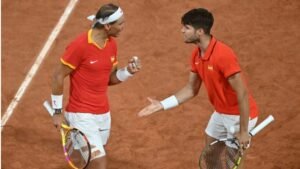 On Saturday, Nadal and Alcaraz, playing together for the first time, defeated Argentina’s Maximo Gonzalez and Andres Molteni 7-6 (7/4), 6-4 in their doubles opener.